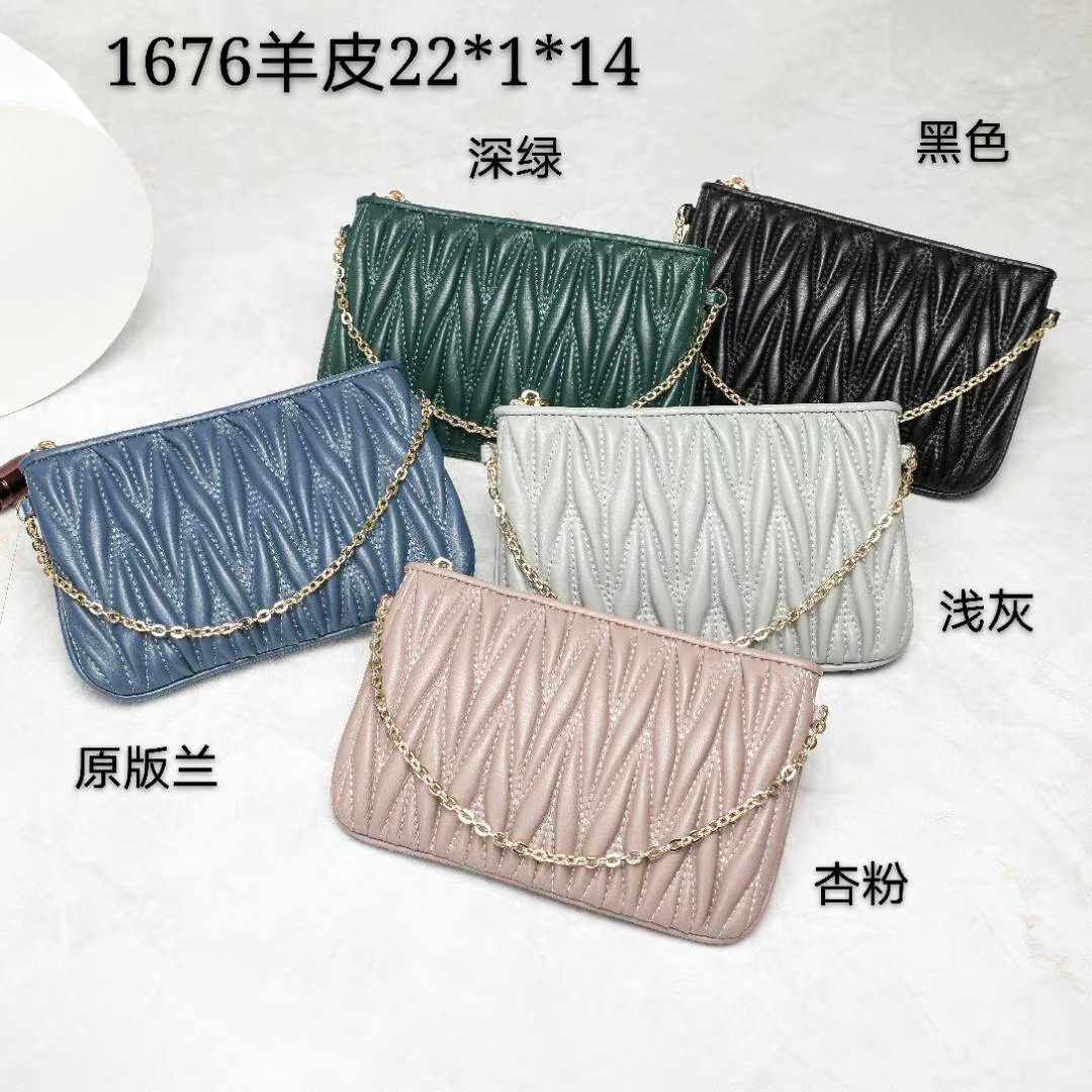 2022 all sheepskin new women's bag genuine leather casual thin belt wrinkle bag ladies shoulder bag Messenger bag