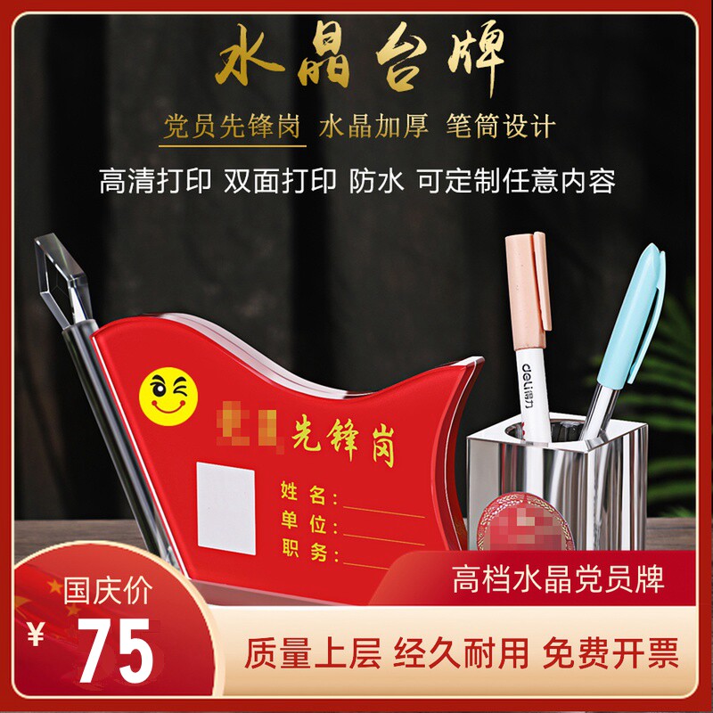Party member demonstration post Double-sided table card table card Communist Party member table card High-grade crystal party member pioneer post card customization