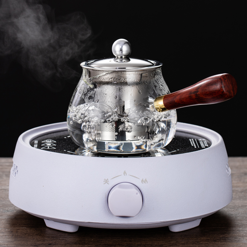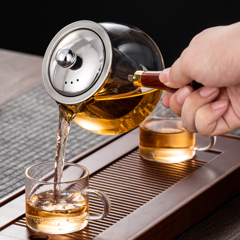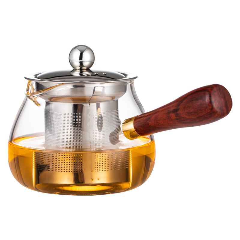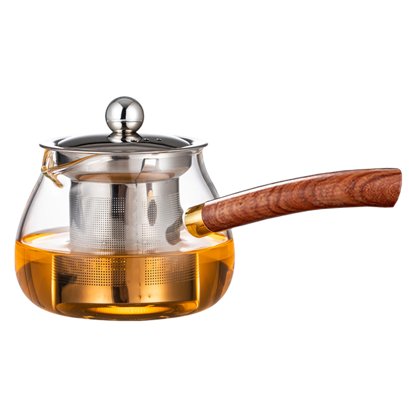 Side handle teapot high temperature thickened glass teapot filter tea maker household electric pottery stove wooden handle teapot