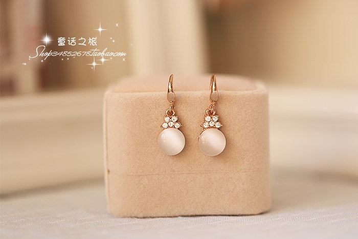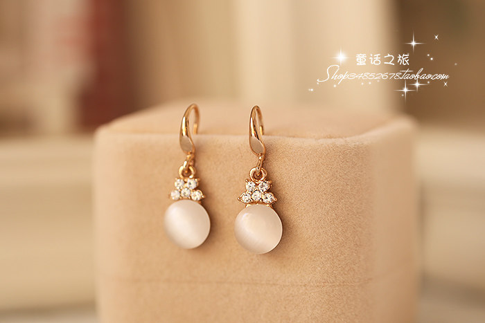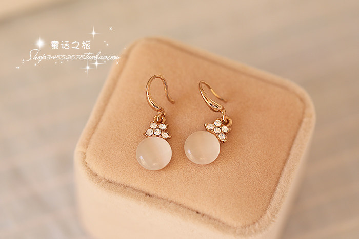 Minimalist 100 Lapped Temperament Retro Golden Japan, South Korea Sweet Beauty INS Naked Pendant Drop Cat Eye Stone Water Drill Earrings S59
