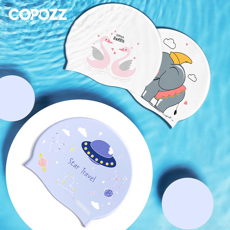 COPOZZ CHILD SILICONE SWIMMING CAP COMFORT Male And Female Child South Korea Fashion Printed Cute Swimming Cap Protective Ear