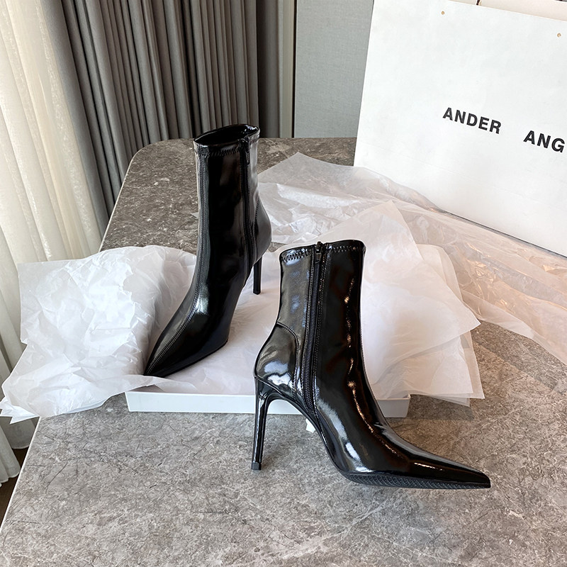 European and American lacquer leather boots children 2021 new autumn and winter pointy heels slim to thin and thin fried street small short boots temperament