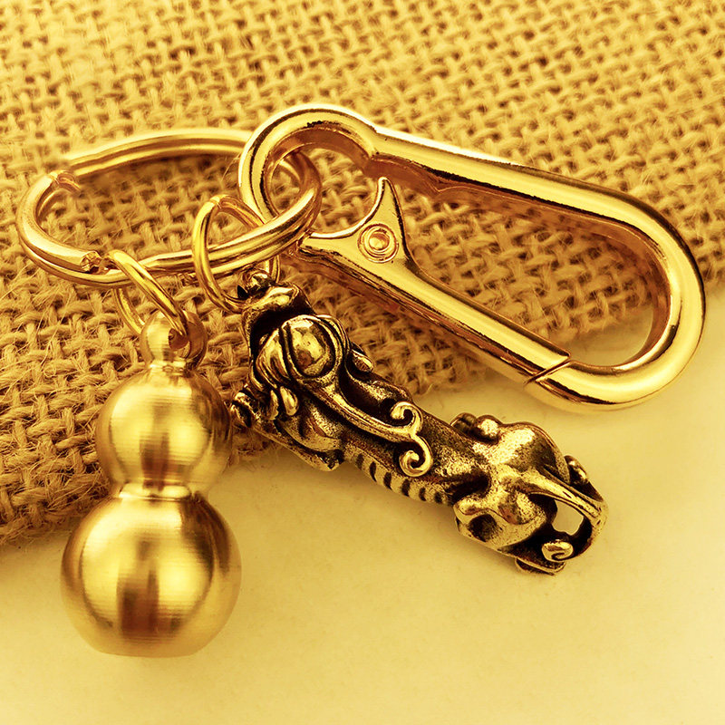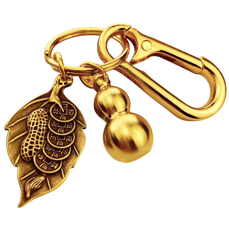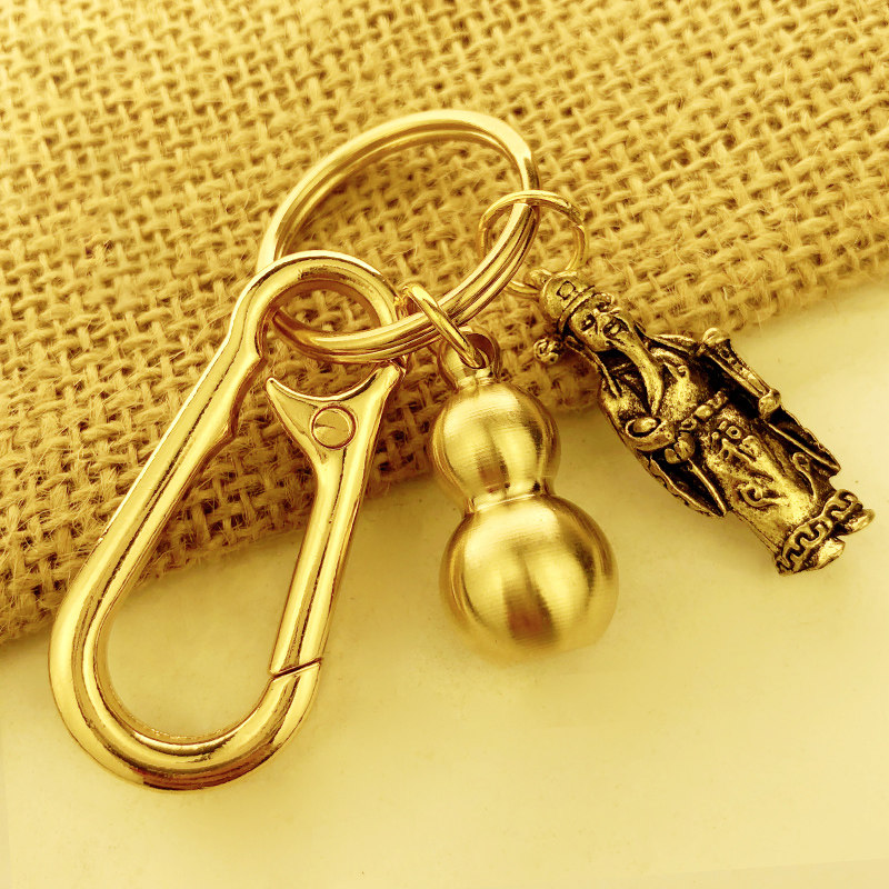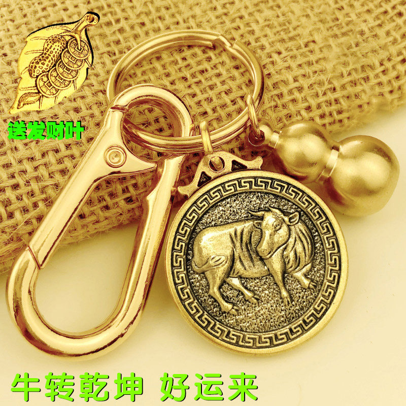 Creative pure brass keychain one night to make a fortune in the pendant transfer gourd car key pendant small gift Man