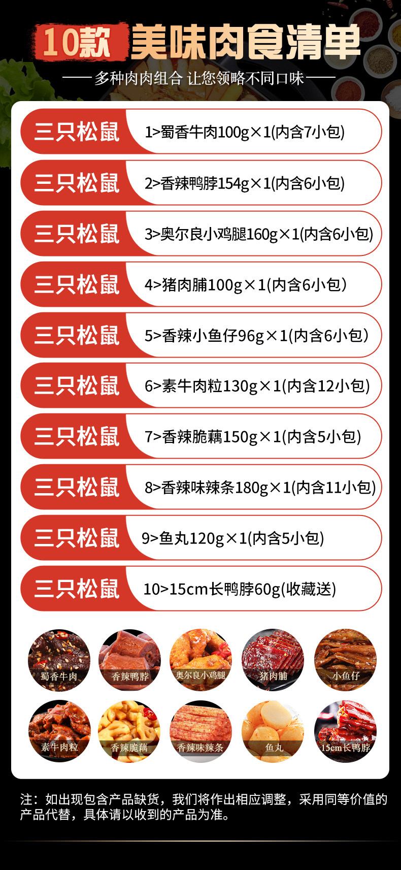 10 meats (all three squirrels brands) 12 meats (all three squirrels brands) 20 carnivos (all three squirrel brands) gift boxes self-selected notes or contact customer service