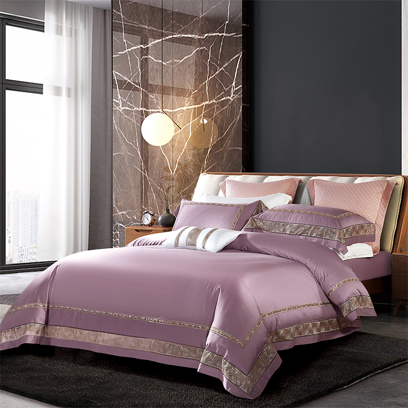 High-end 140 pcs light luxury wedding bed sheet cotton four-piece set simple long-staple cotton embroidery quilt cover bedding