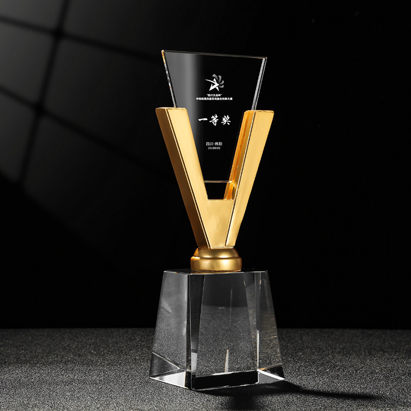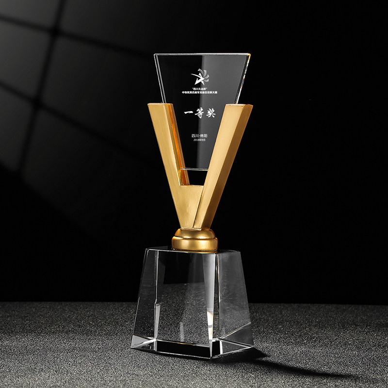 Crystal Trophy Medal Custom Company Awards Authorization Cards High-end Metal V-shape Trophy Set As Souvenir Lettering