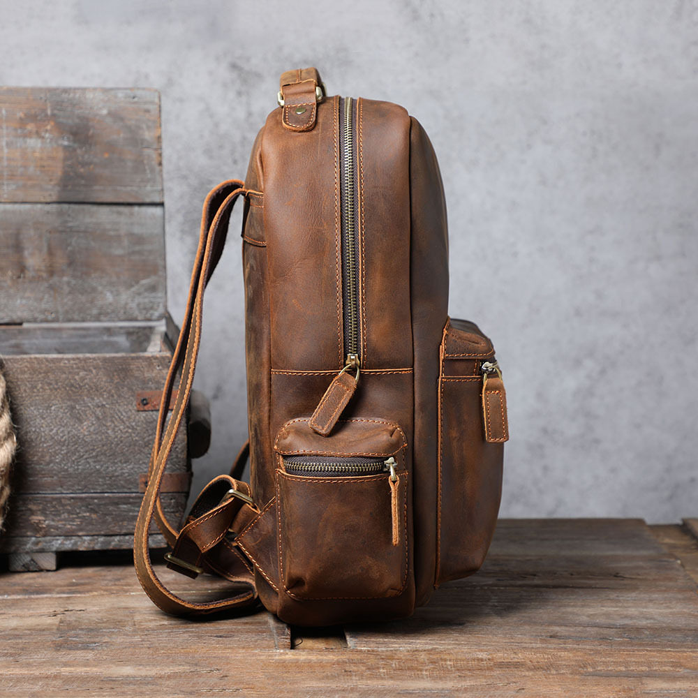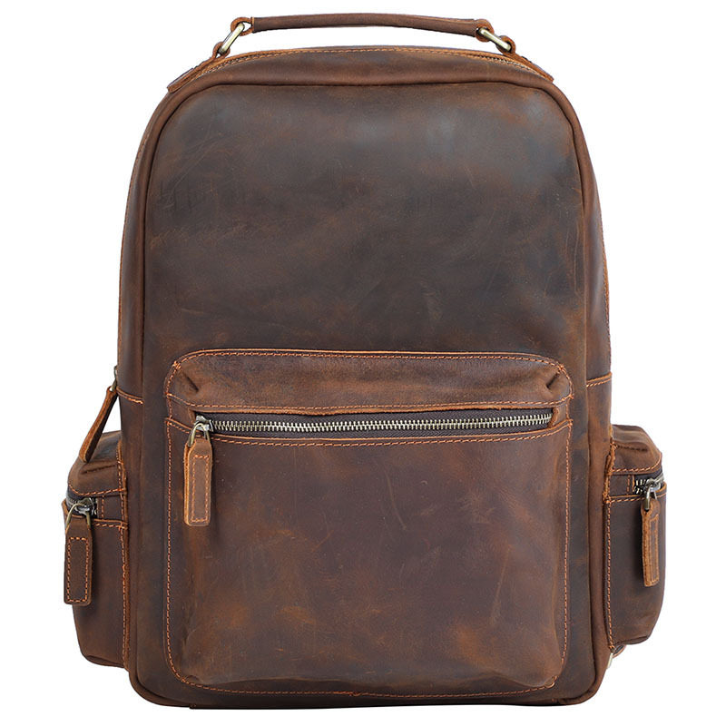 Retro British Crazy Horse leather backpack men's first layer cowhide old travel backpack large capacity leather computer backpack