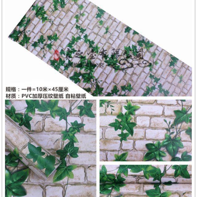 Thickened brick self-adhesive wallpaper creeper green leaves bedroom decoration renovation package wallpaper bedroom rental