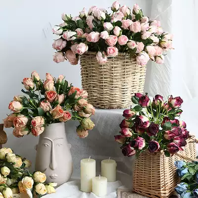 Rose red autumn White autumn powder autumn yellow autumn orange autumn blue 12 branches autumn powder with grip straight basket 12 branches autumn orange belt rope woven basket single purchase with grip straight basket single purchase
