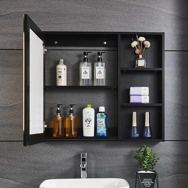(Tri-color lamp + defogging + time temperature) (80CM) single door mirror cabinet