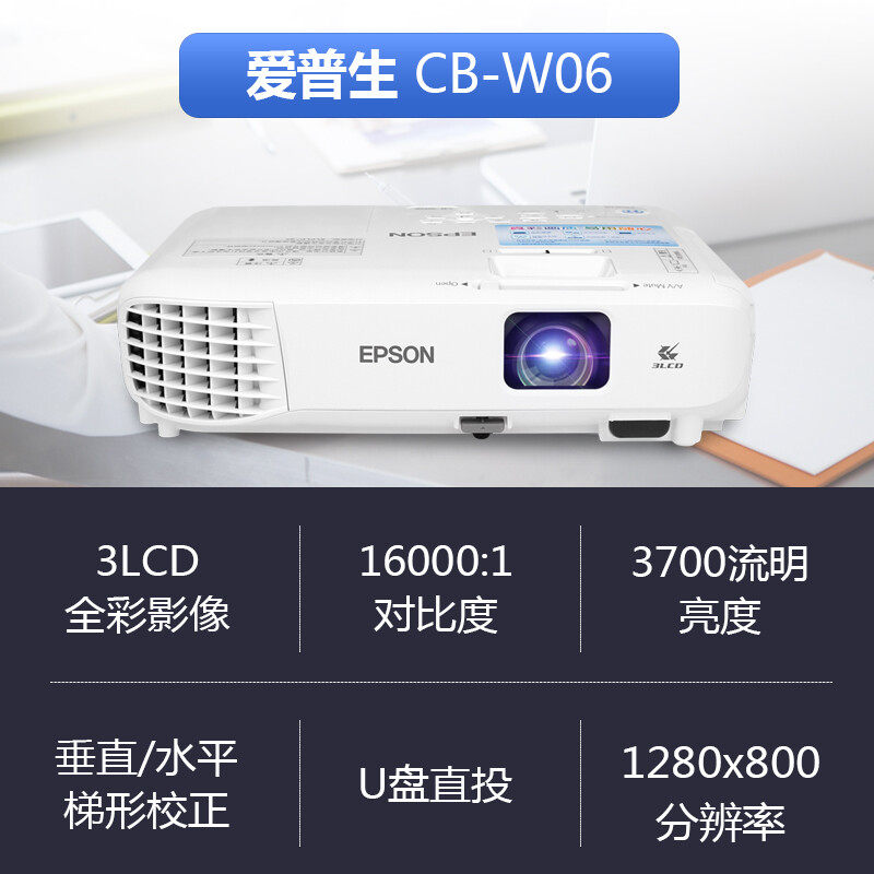 EPSON Epson projector CB-W06 office large conference room school online course teaching education training high-brightness widescreen ultra-high definition home home theater 3700 lumens projector