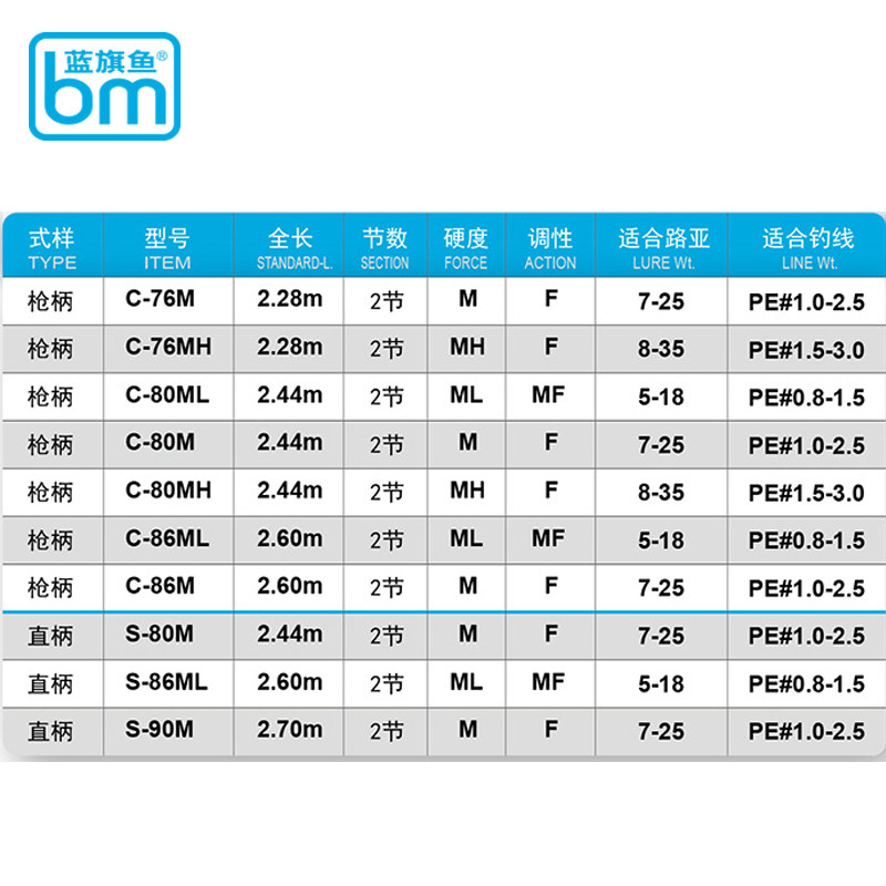 C-76M-2 28m - handle 2 sections C-80ML-2 44m - handle 2 sections C-80M-2 44m - handle 2 sections C-80MH-2 44