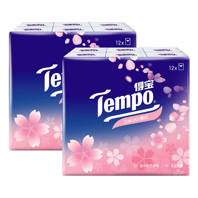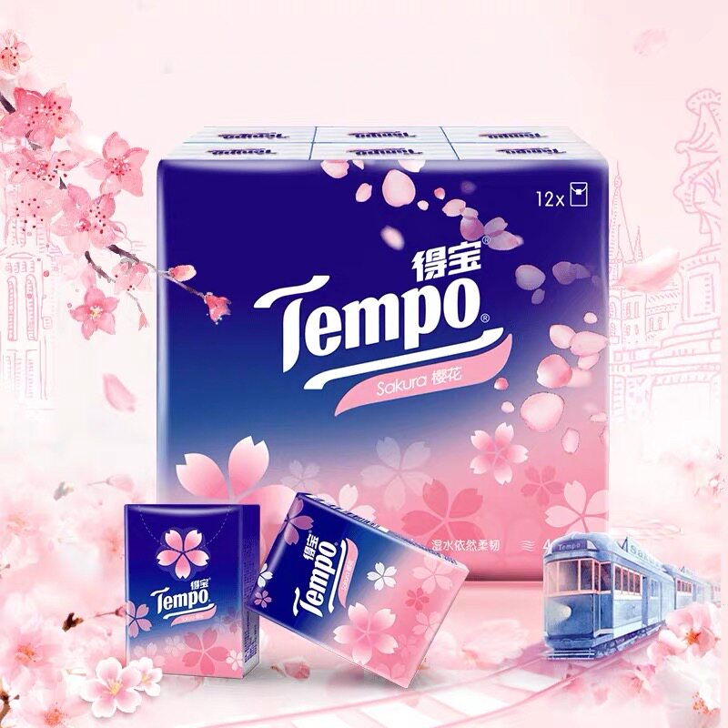 TempoTempo paper handkerchief 4-layer thickened packet paper towel 7 * 24 packs cherry blossom fragrance Debao portable paper towel