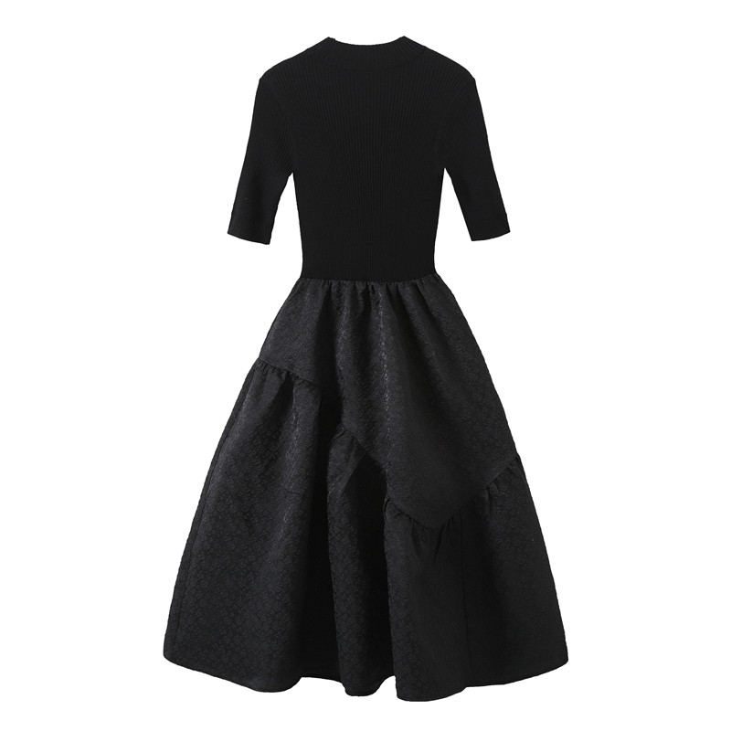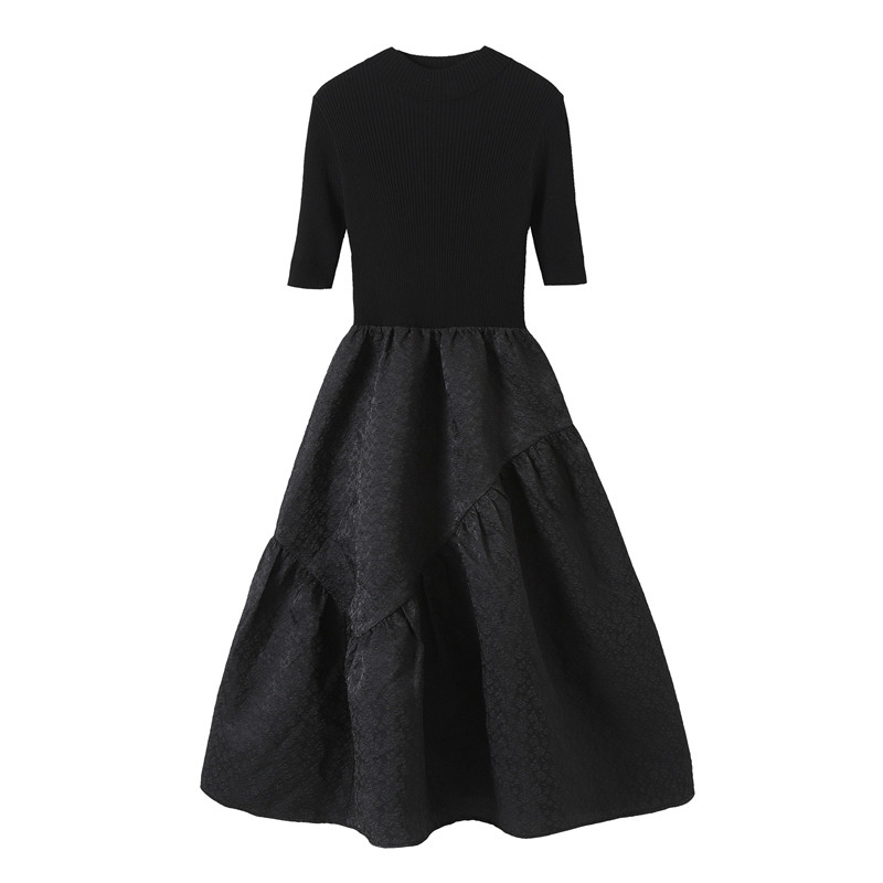cwj2022 spring vintage versatile slim waist knit paneling mid-length puff skirt dress women's umbrella skirt Harbor style