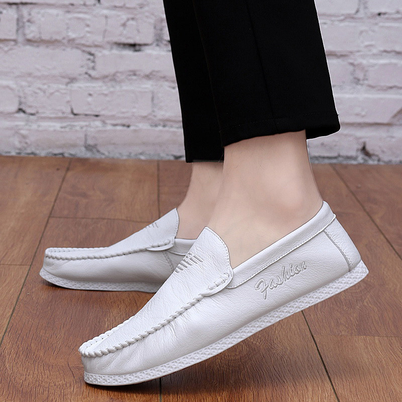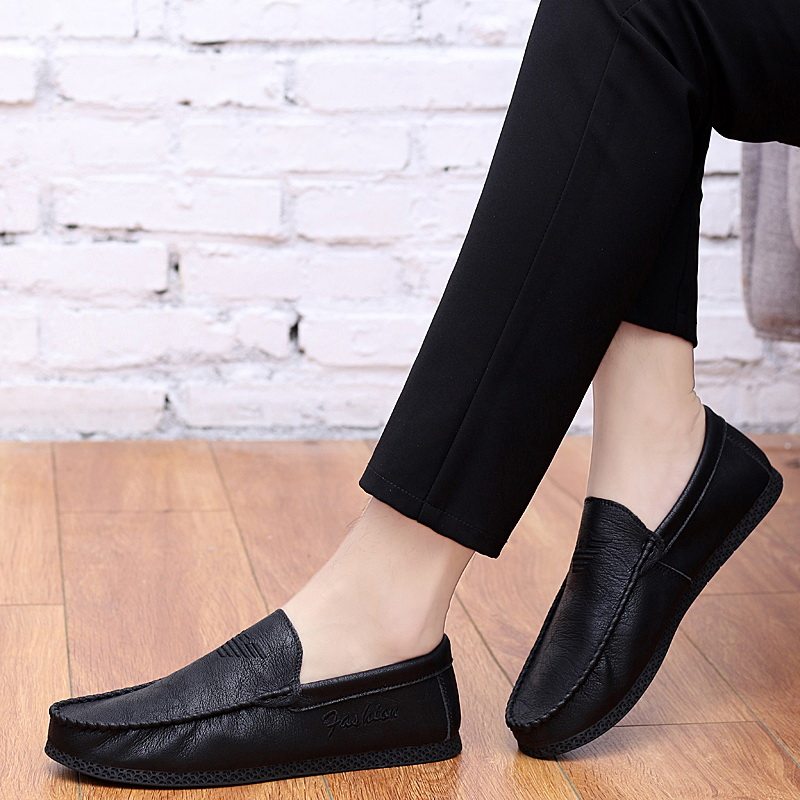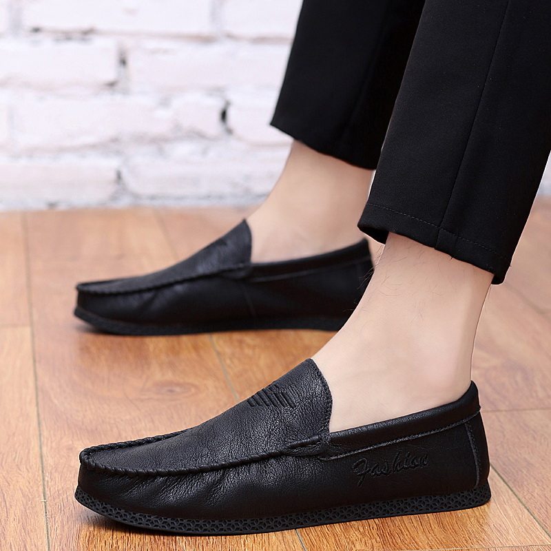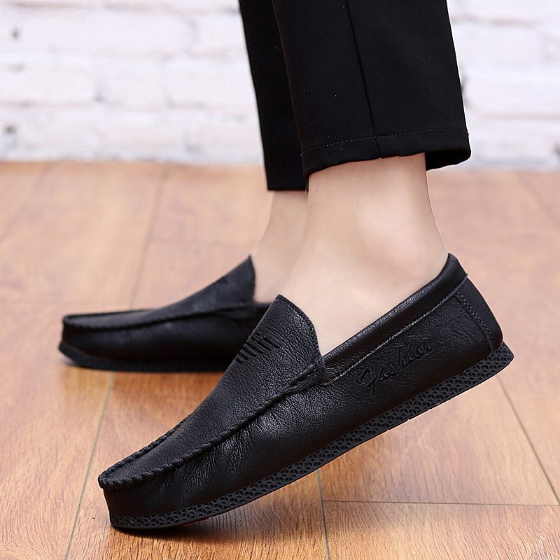 Summer breathable beanie shoes men's leather men's leather shoes 2022 new black trend casual slip-on shoes