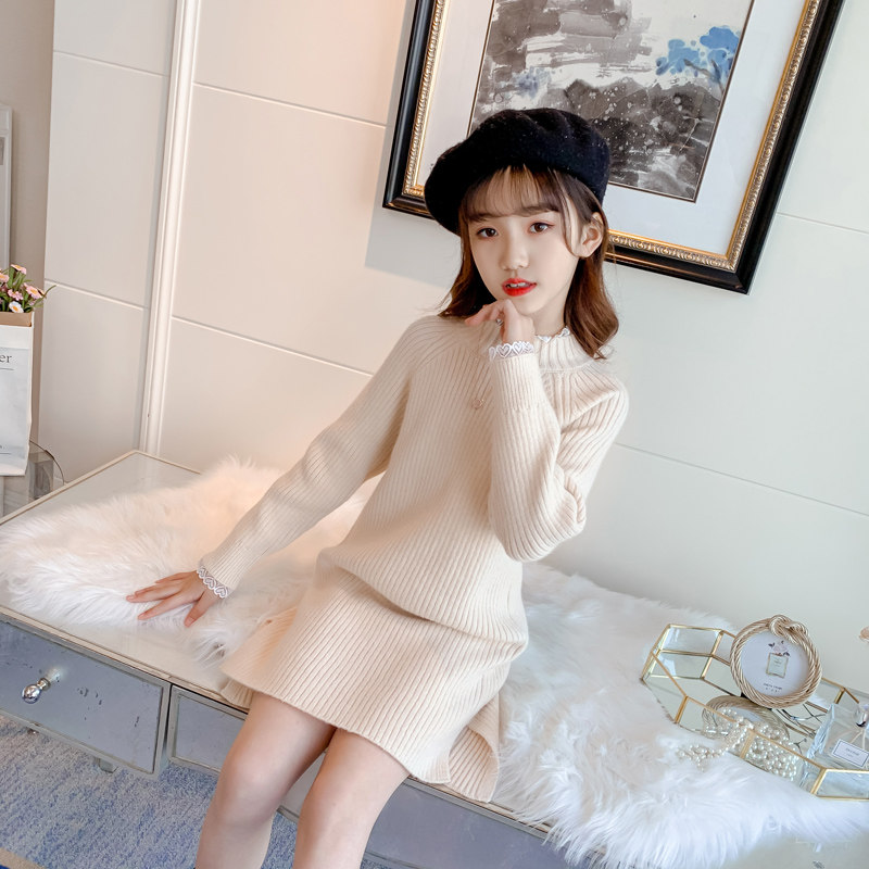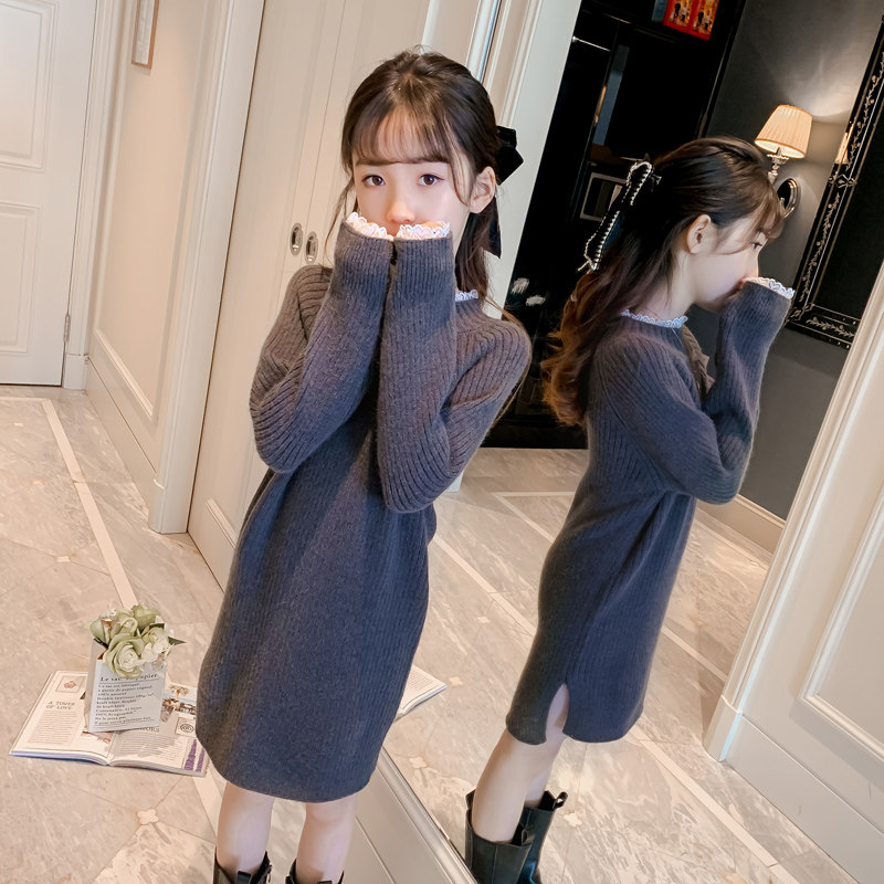 Girls winter mid-length thick sweater skirt 2022 new New Year's dress little girl Western style dress knitted sweater