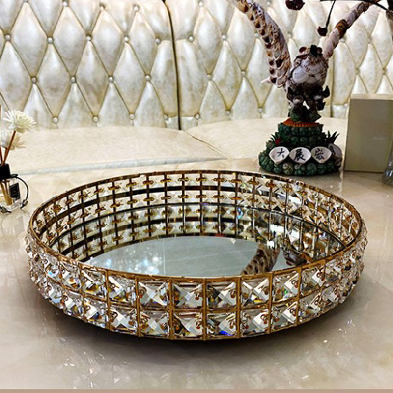 Nordic light and luxurious crystal Trays Metal Glass Mirror Tea Tray Cups Wine Deputable Wedding Cosmetics Containing boxes
