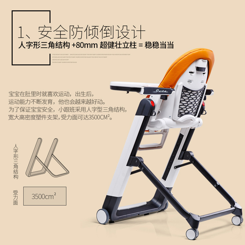 Peg Perego Siesta High Chair Folding Portable High Chair Adjustable Baby High Chair