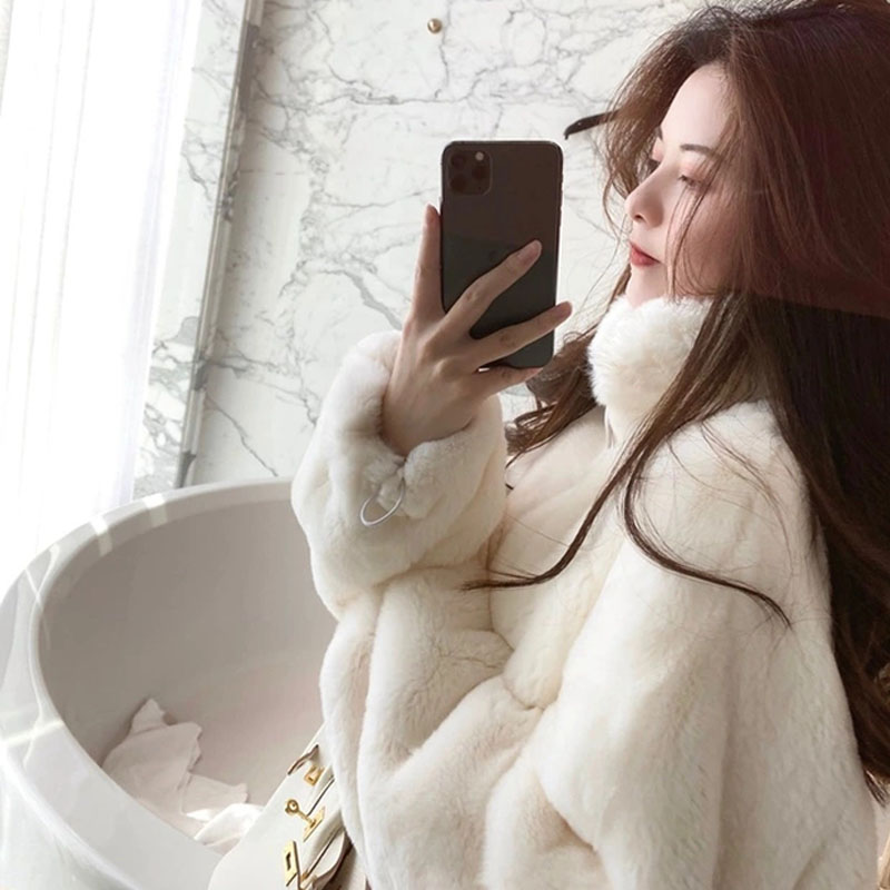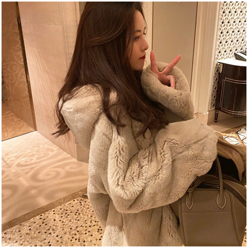 White Rex Rabbit Fur Cover Woman Winter Han Edition Loose Young Fashion Young Little and Thick Fur Coat
