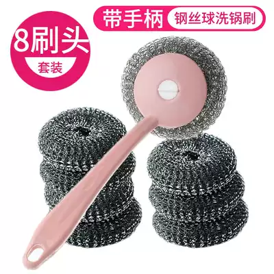8 stainless steel wire balls with handle pot brush Large cleaning brush Wire brush cleaning ball Kitchen dishwashing ball
