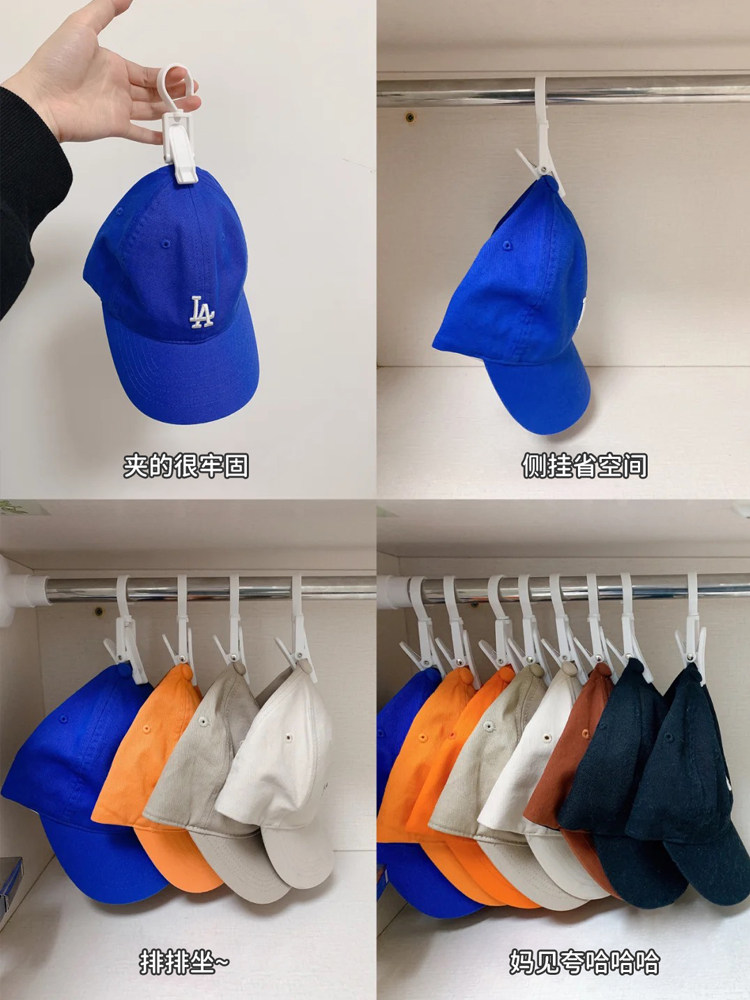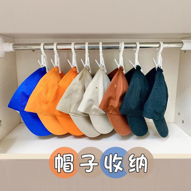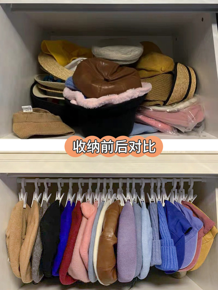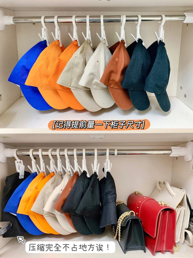 Hanging hat storage shelf hook household finishing artifact installation-free wardrobe telescopic telescopic rod clip put hat shelf