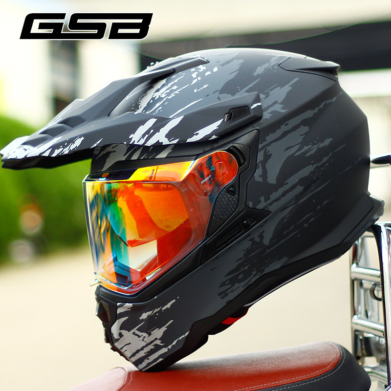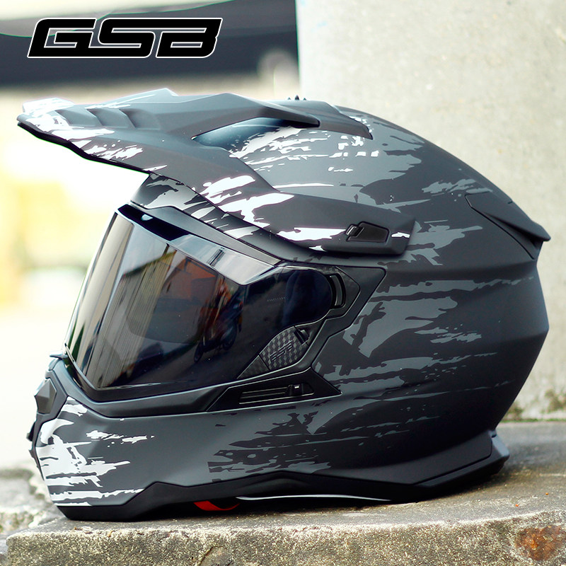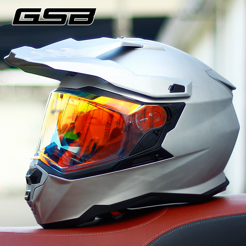 GSB Motorcycle Rally Helmet Off-Road Helmet Double Lens Anti-Fog Full Helmet Head Gray Summer Breathable Men Hard Hat