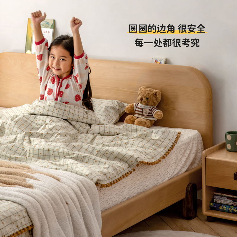 Genji wooden language solid wood children's bed Nordic simple bedroom 1 5m wooden bed small apartment space-saving 1 2m single bed