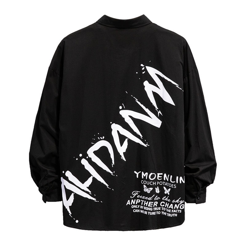 21 spring tide brand street letter graffiti long-sleeved shirt men's loose all-match couple casual white shirt jacket