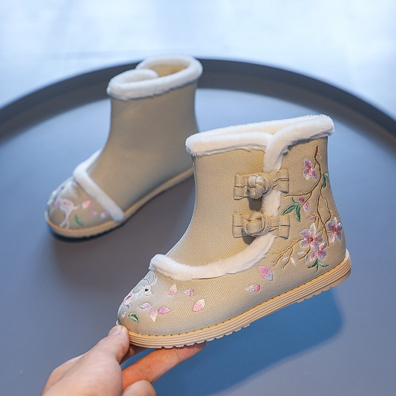 Fall and Winter Girl Caffet Shoes Shoes Children Embroidery Cotton Shoes China Fengold Beijing Shoes Snow Boots plus velvet