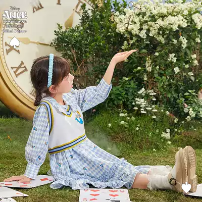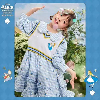 (Alice)minipeace Taiping Bird girl dress Spring and Autumn vest suit Plaid printed long skirt m
