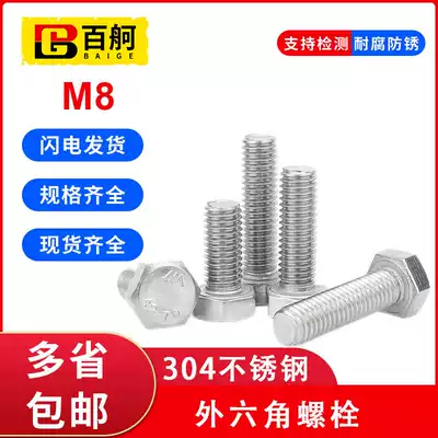 304 stainless steel hexagon screw M8 full tooth outer hexagon Bolt lengthy hexagon head screw
