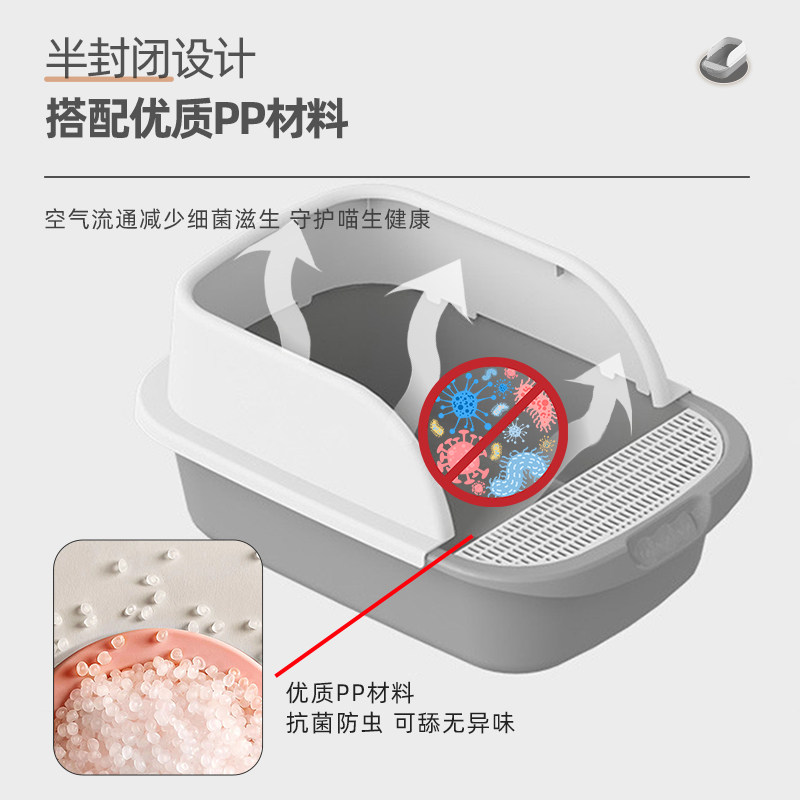 Cat litter box oversized kitten semi-enclosed cat toilet high fence odor-proof splash-proof with litter cat supplies
