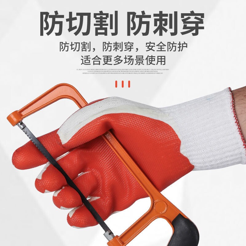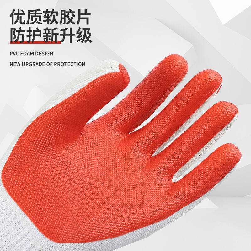 Wolf line film gloves labor insurance plastic non-slip glue thickened wear-resistant steel construction site construction protection