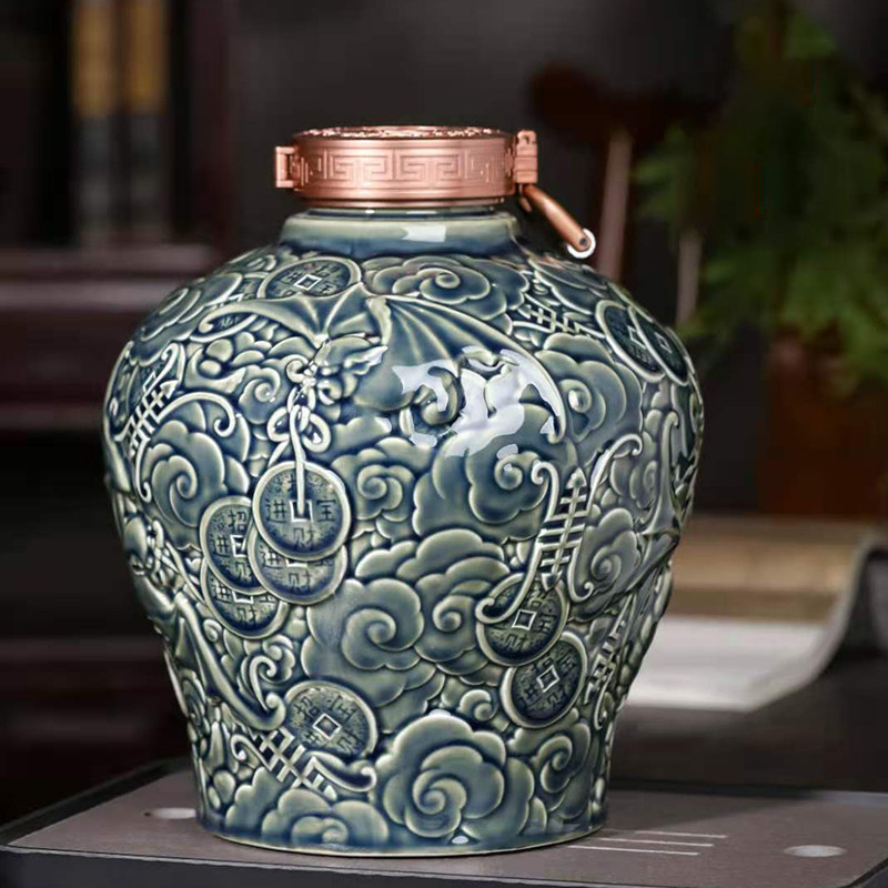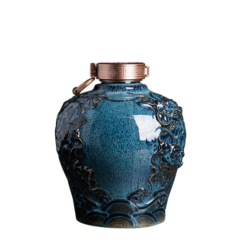 Wine jar Jingdezhen ceramic sealed cellar vintage engraving dragon pattern bubble liquor jar wine jug empty wine bottle 5 10 catties