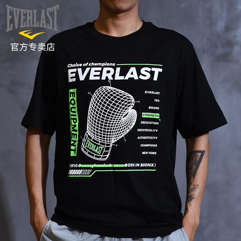 EVERLAST boxing sports T-shirt men's running cotton short-sleeved loose basketball fitness training full printed logo