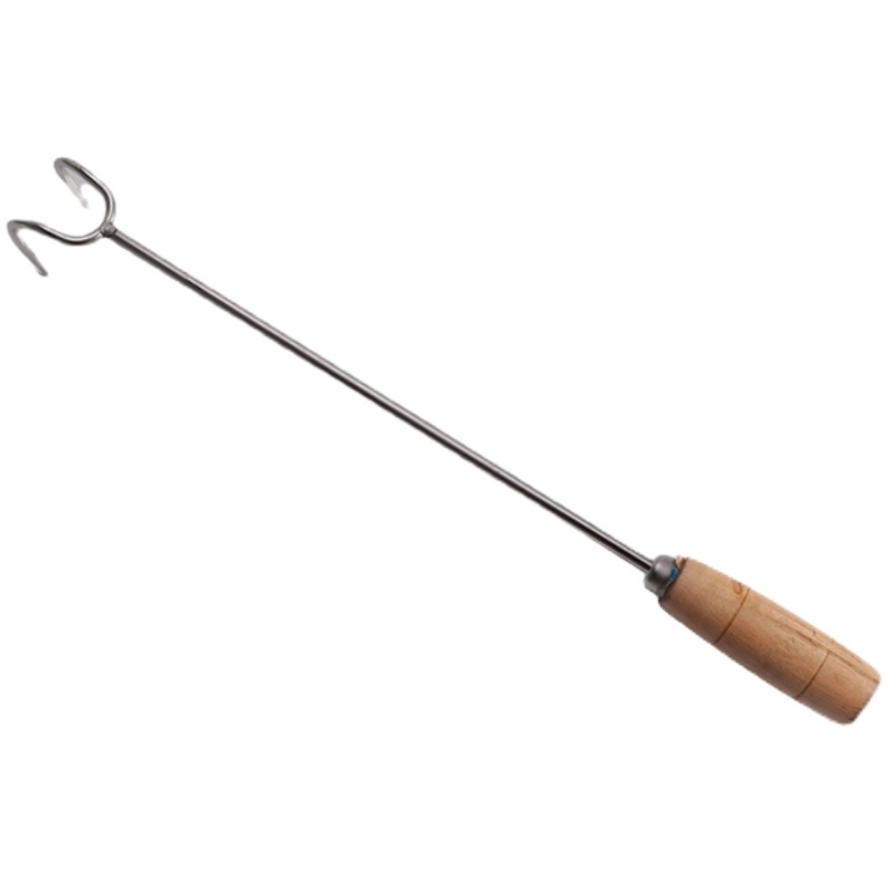 Stainless steel wood handle grab meat hook hotel household halogen grab peak fork long handle steel to the red fork pork hook