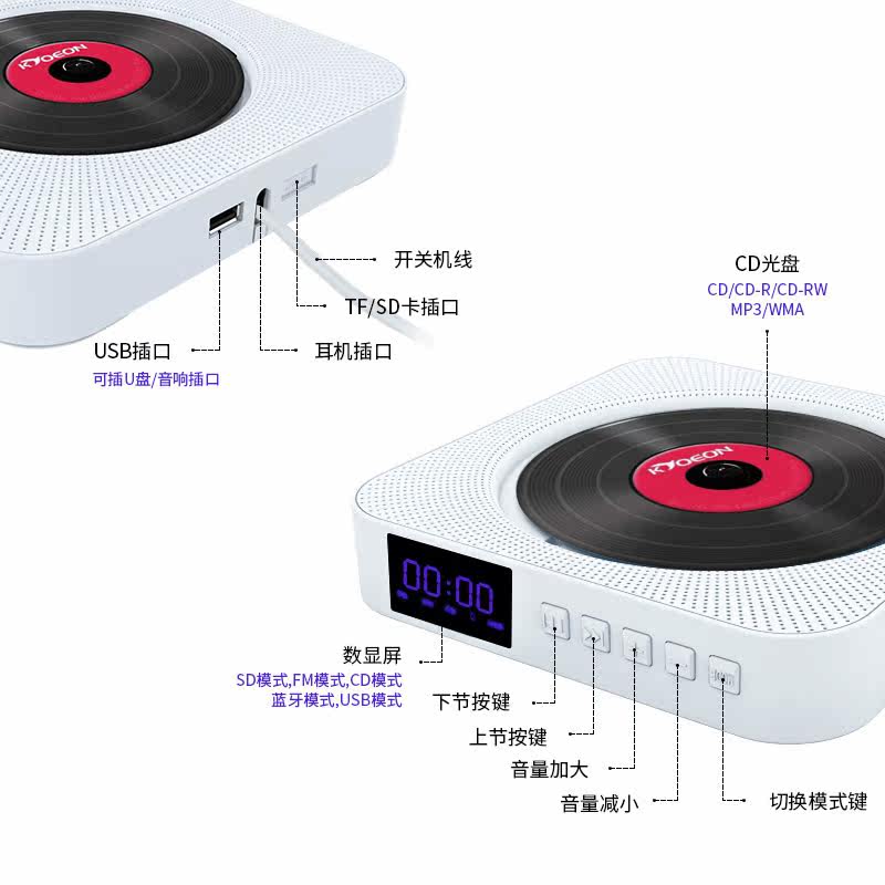 2nd Generation White CD Machine With Bluetooth Function Special Bracket 2nd Generation Classic Black CD Machine With Bluetooth Function Special Bracket 2nd Generation Coral Powder CD Machine With Bluetooth Function Special Bracket