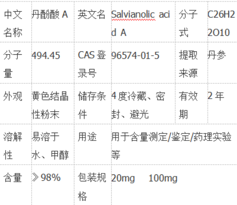 Salvianolic acid A 20mg (98%) Salvianolic acid A 100mg (98%) Salvianolic acid B 20mg (98%) Salvianolic acid B 100mg (98%) Dan