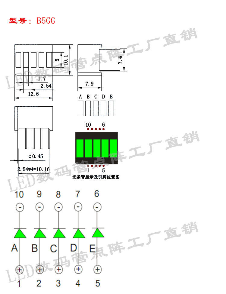 Light strips glow tubes 5 sections of five greens green light indication strips 12 5 * 10mm light strips B5GG