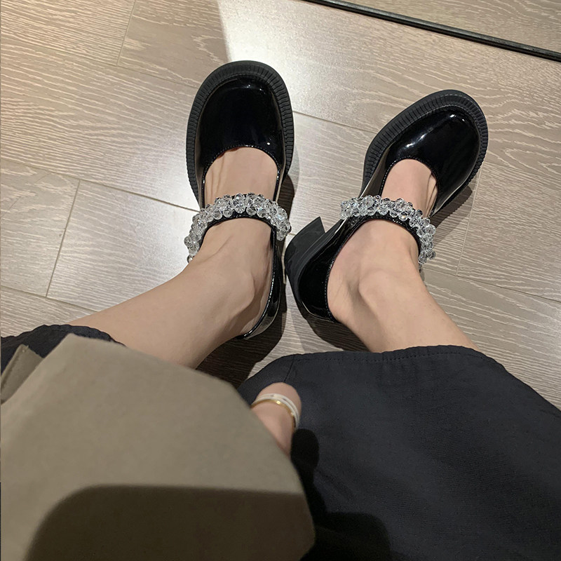 No-two-orange-retro coarse heel-button Mary Jane shoes high heel genuine leather Inn wind small leather shoes Head doll Shoe