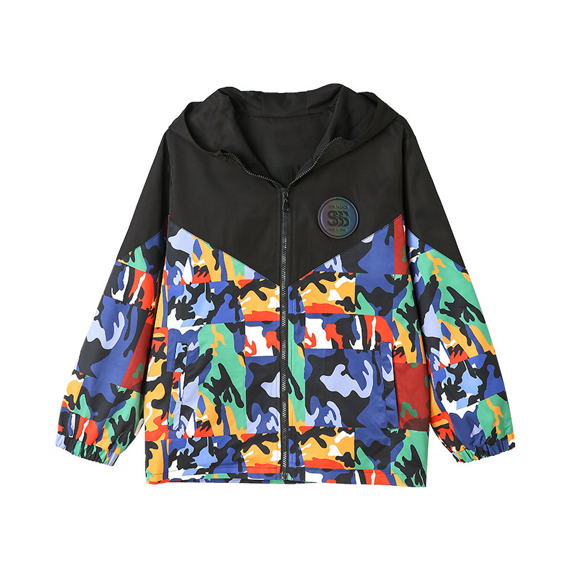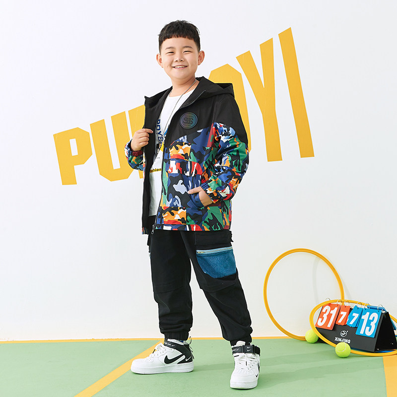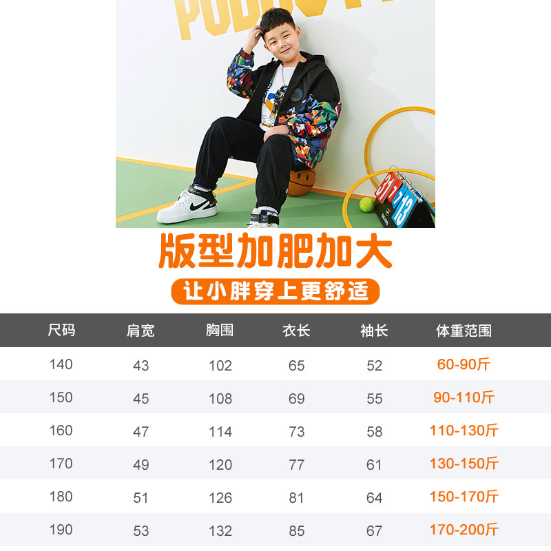 Fat boy jacket spring and autumn Western style tide loose large size plus fat plus large children's top Boy hooded trench coat