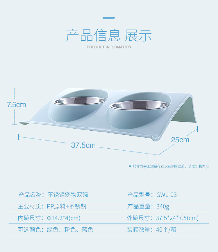 Stainless Steel Pet Double Bowl New Plastic Dog Bowl Teddy Dog Bowl cat Bowl Bowl Factory Direct