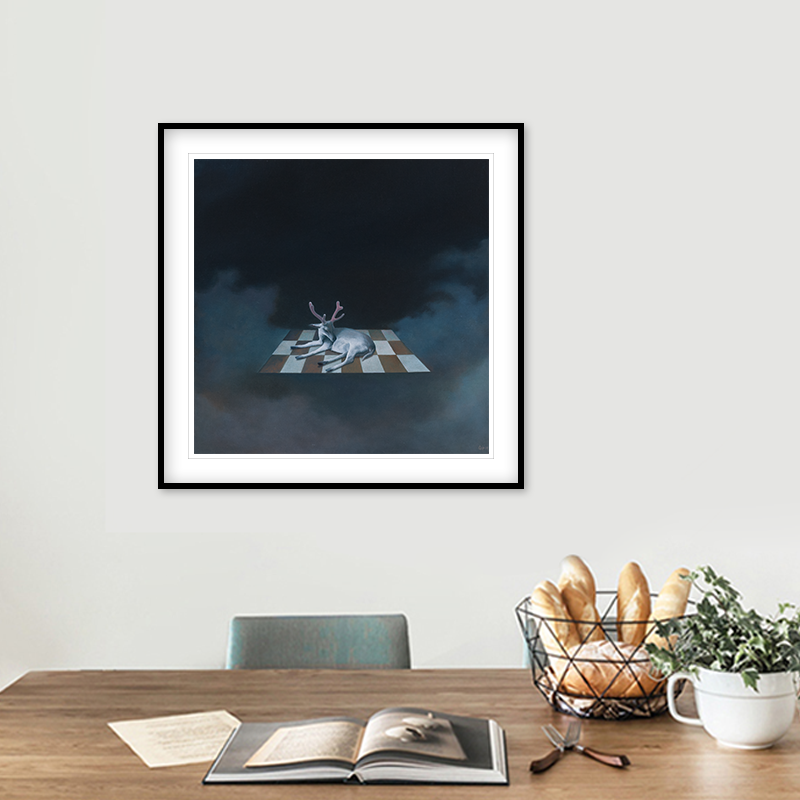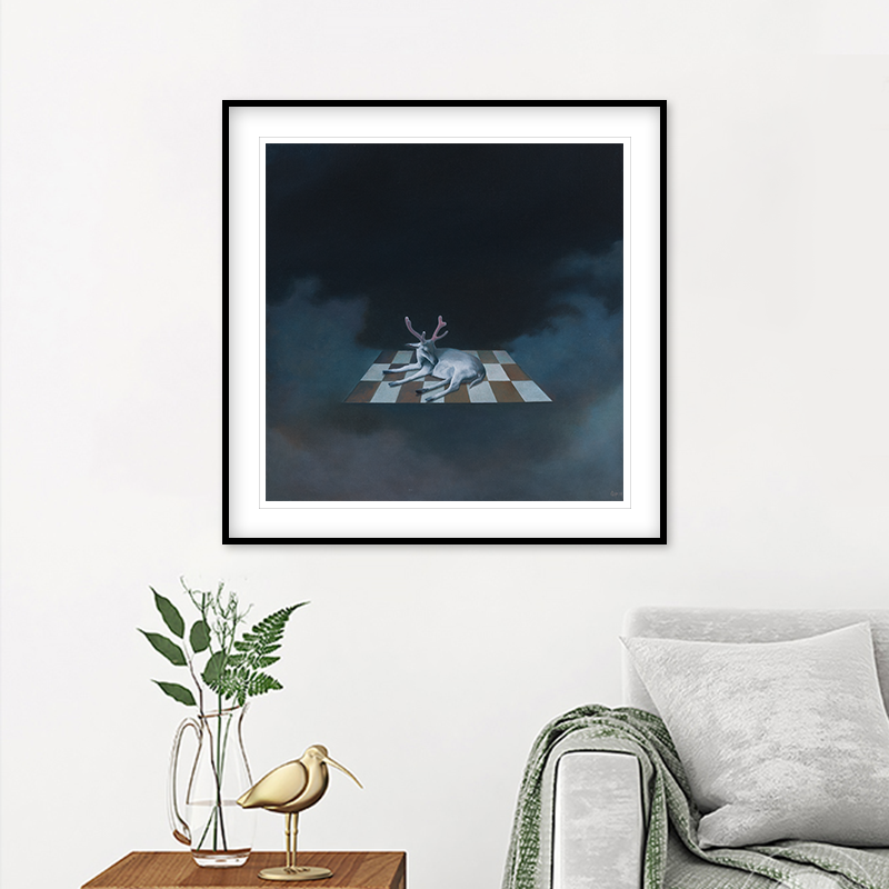 Central Academy of Fine Arts Zhong Mingfeng's "White Deer" limited edition print with mounted living room porch decorative painting hanging painting
