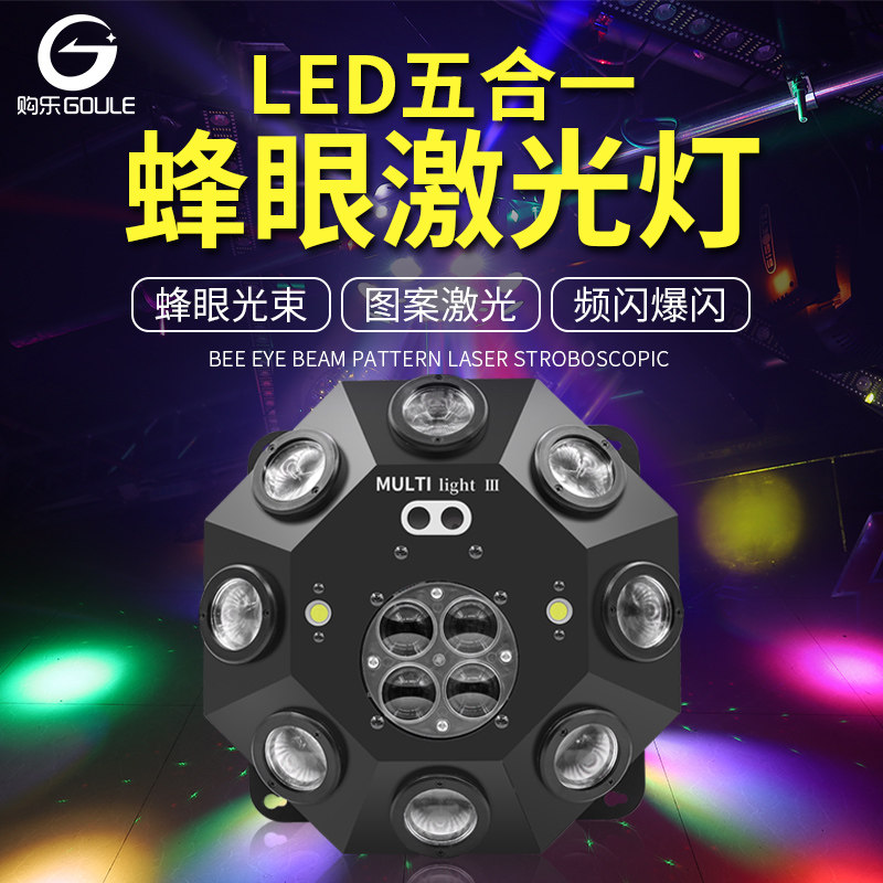 KTV flash five-in-one bee eye beam laser light stage light colorful rotating voice control pattern effect lamp home living room bar disco disco burst flash bar private room DJ bungee light