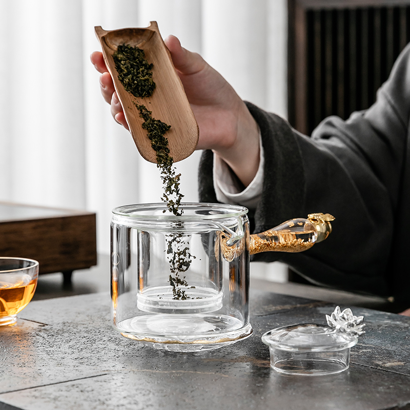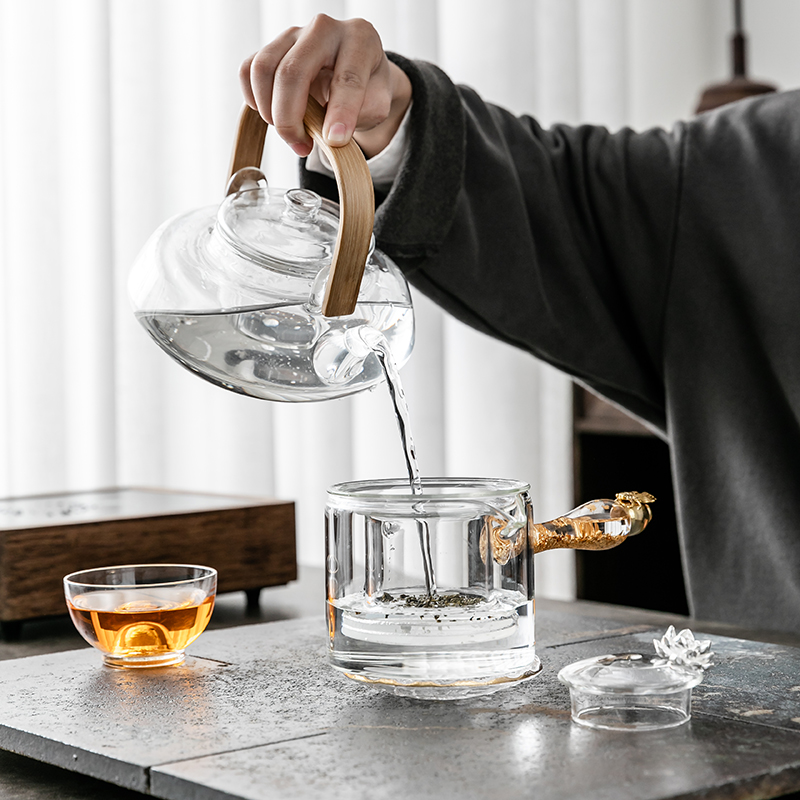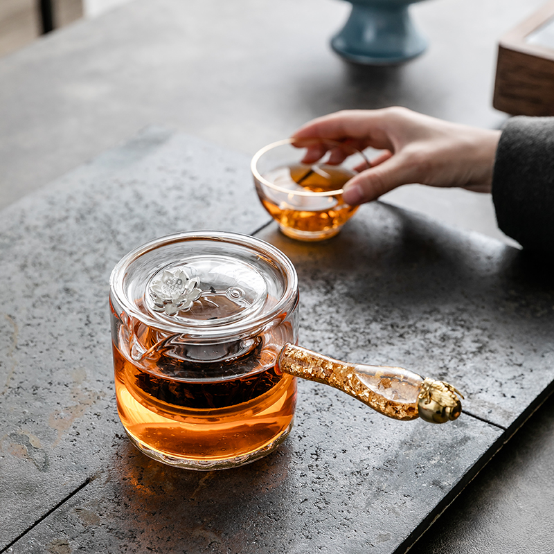 Light luxury creative glass gold tea heat resistance and thickness side teapot high temperature instrument small household cooking number filter steam