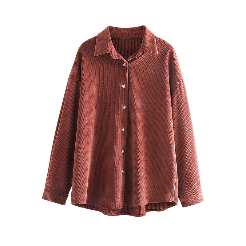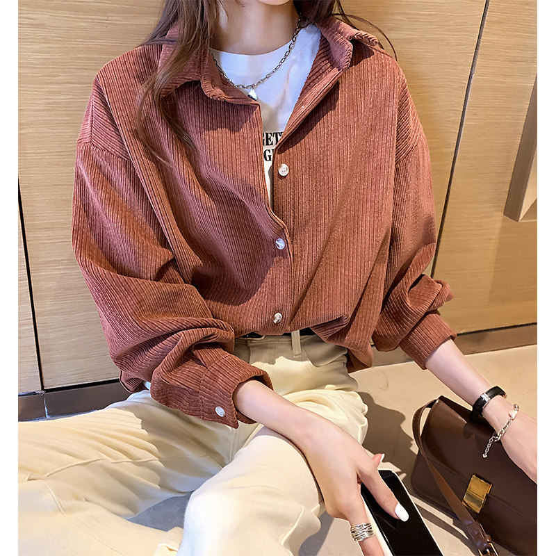 White shirt women thicken autumn winter brushed corduroy 2021 new size loose outer blouse spring and autumn
