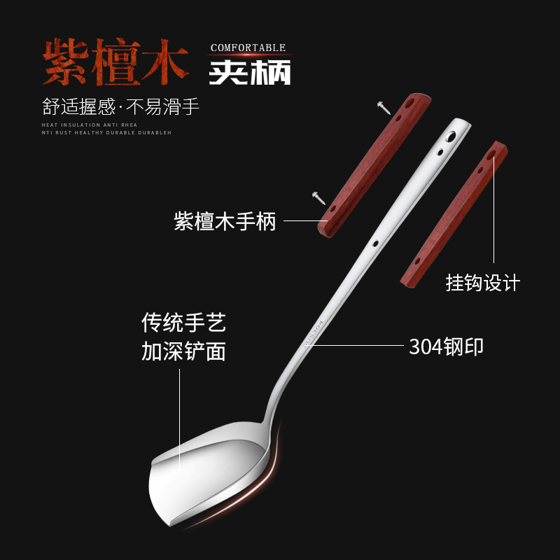304 stainless steel pan shovel (purple sandalwood handle) 304 stainless steel soup spoon (purple sandalwood handle) 304 pan shovel 304 soup spoon (purple sandalwood handle) 304 stainless steel pan shovel (