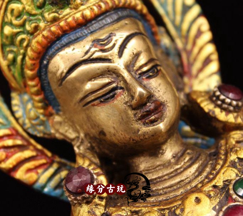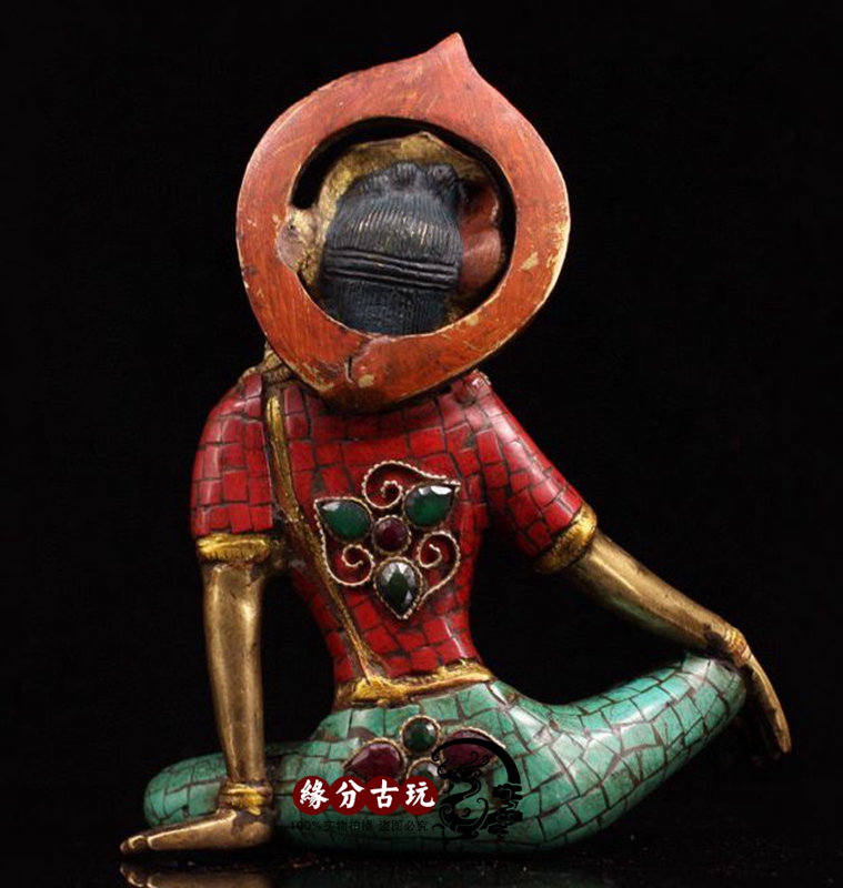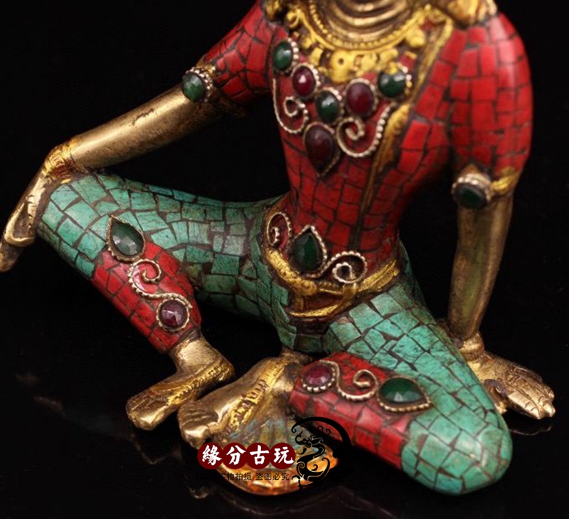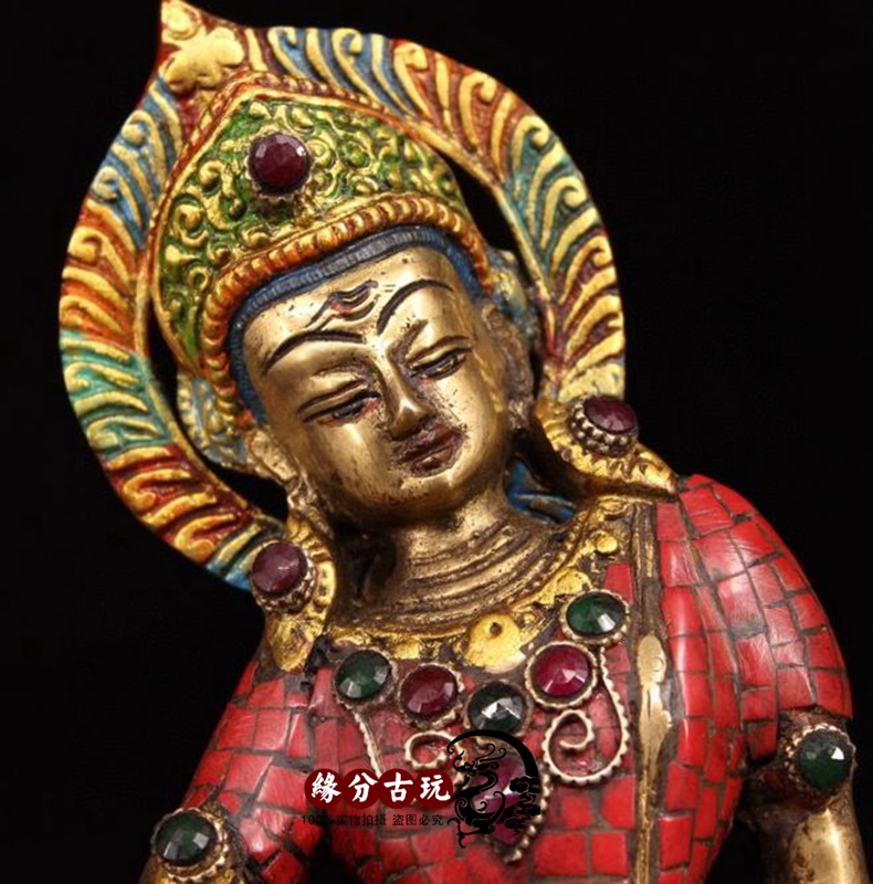 West Leaf Backflow Nepal Pure Patina Buddha Bronze Inlaid Gem Turquoise Buddha Hall Ornament