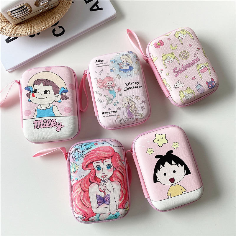 Rectangular Cute Cartoon Bluetooth Headphone Contained Packet Data Line Charger Portable Finishing Case Leather Bracelet Women