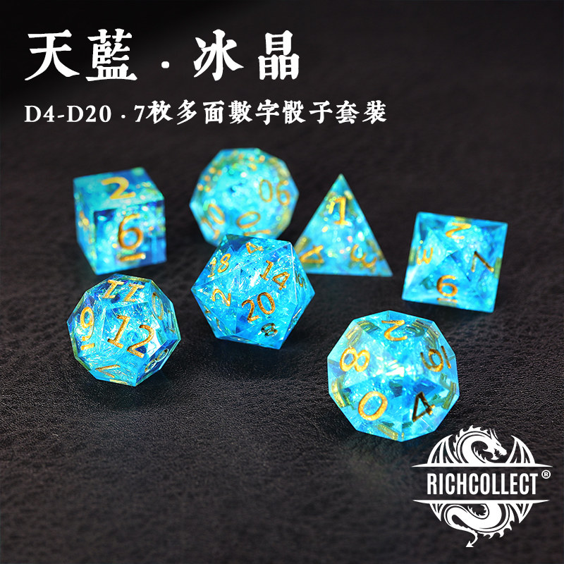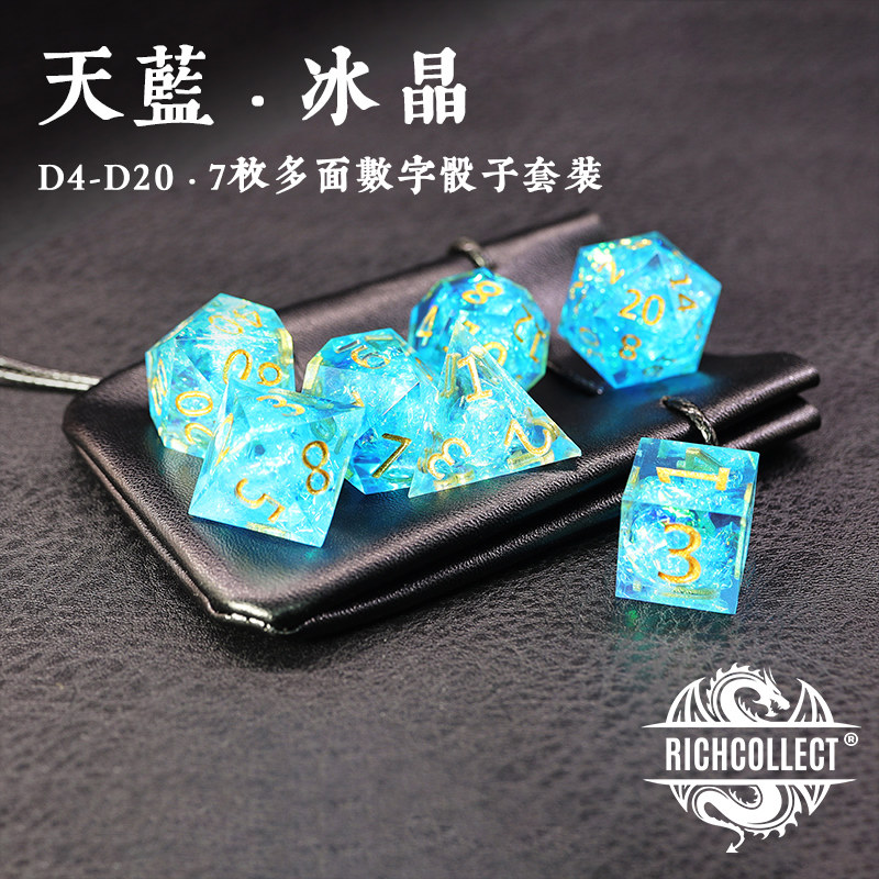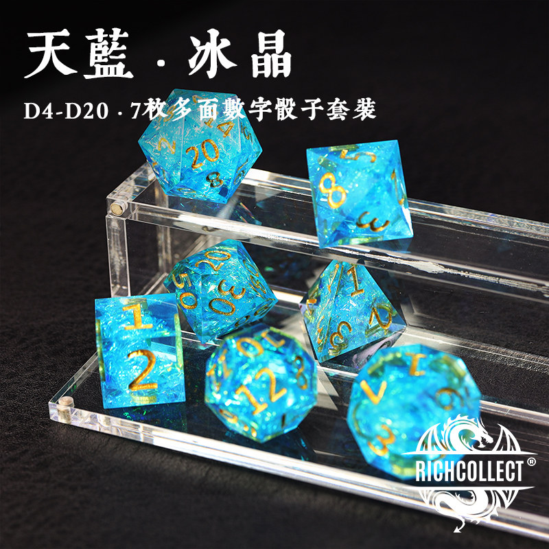 Sky Blue Ice Crystal Dice set Dungeons and Dragons DnD acrylic RPG Kesulu running group board game digital color
